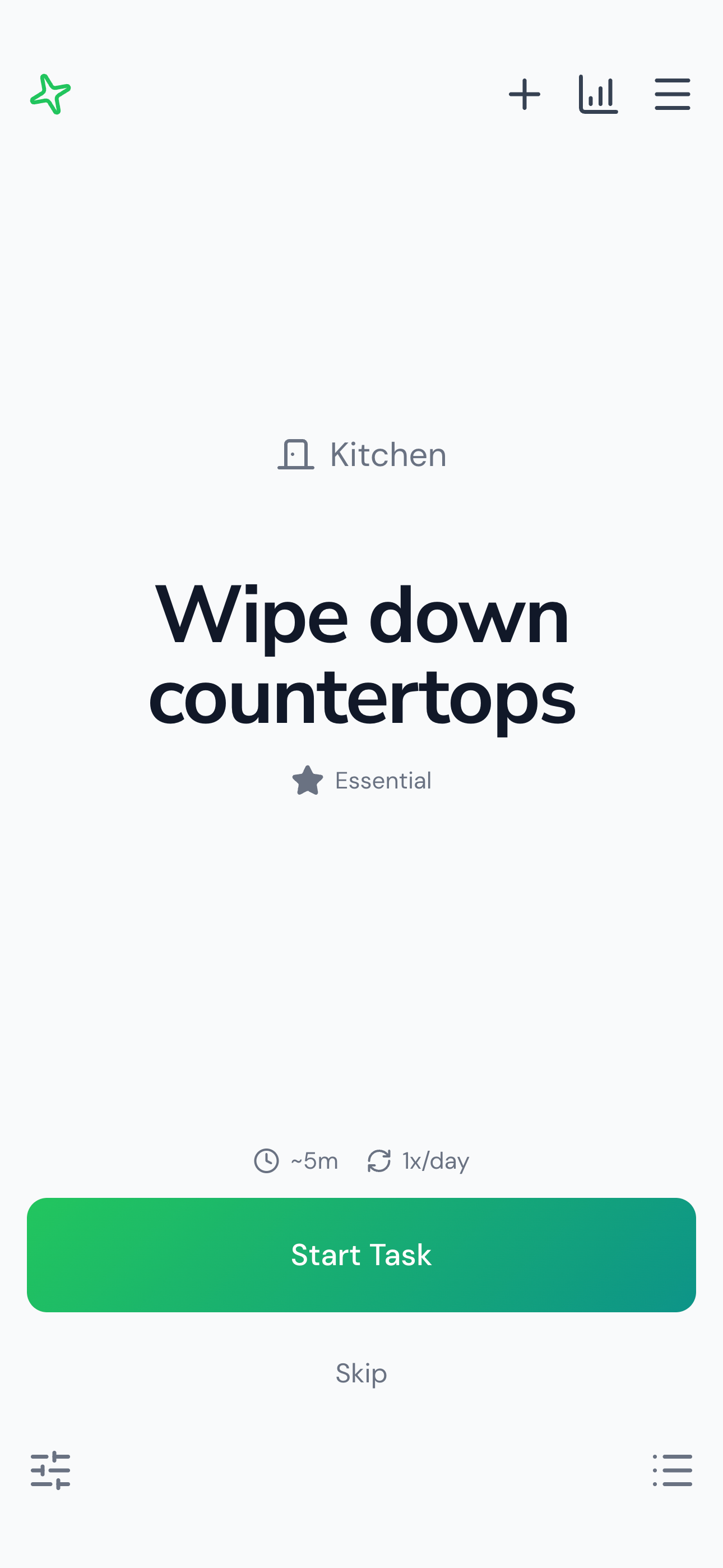 Some days you want to knock out essentials. Some days you want to focus on one room. Some days you want to see everything.