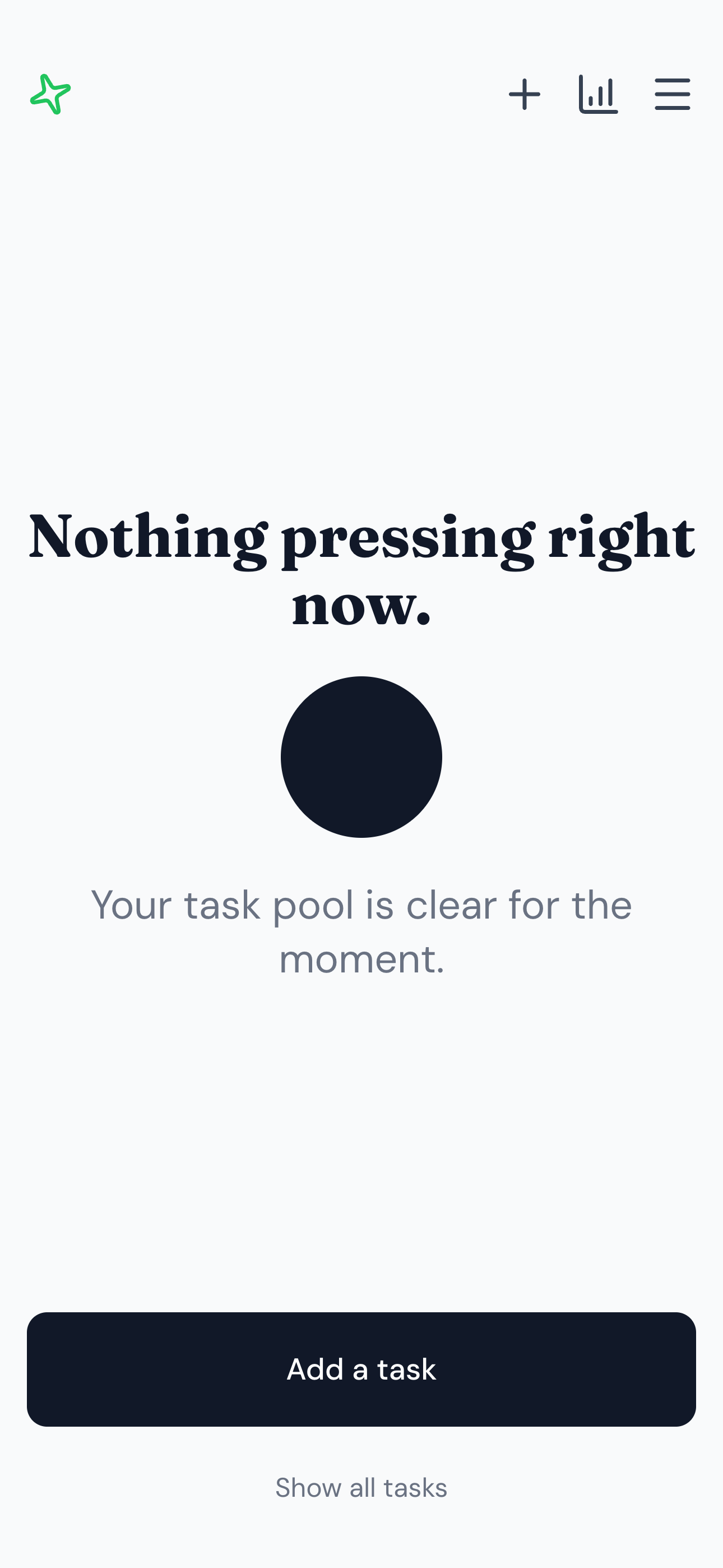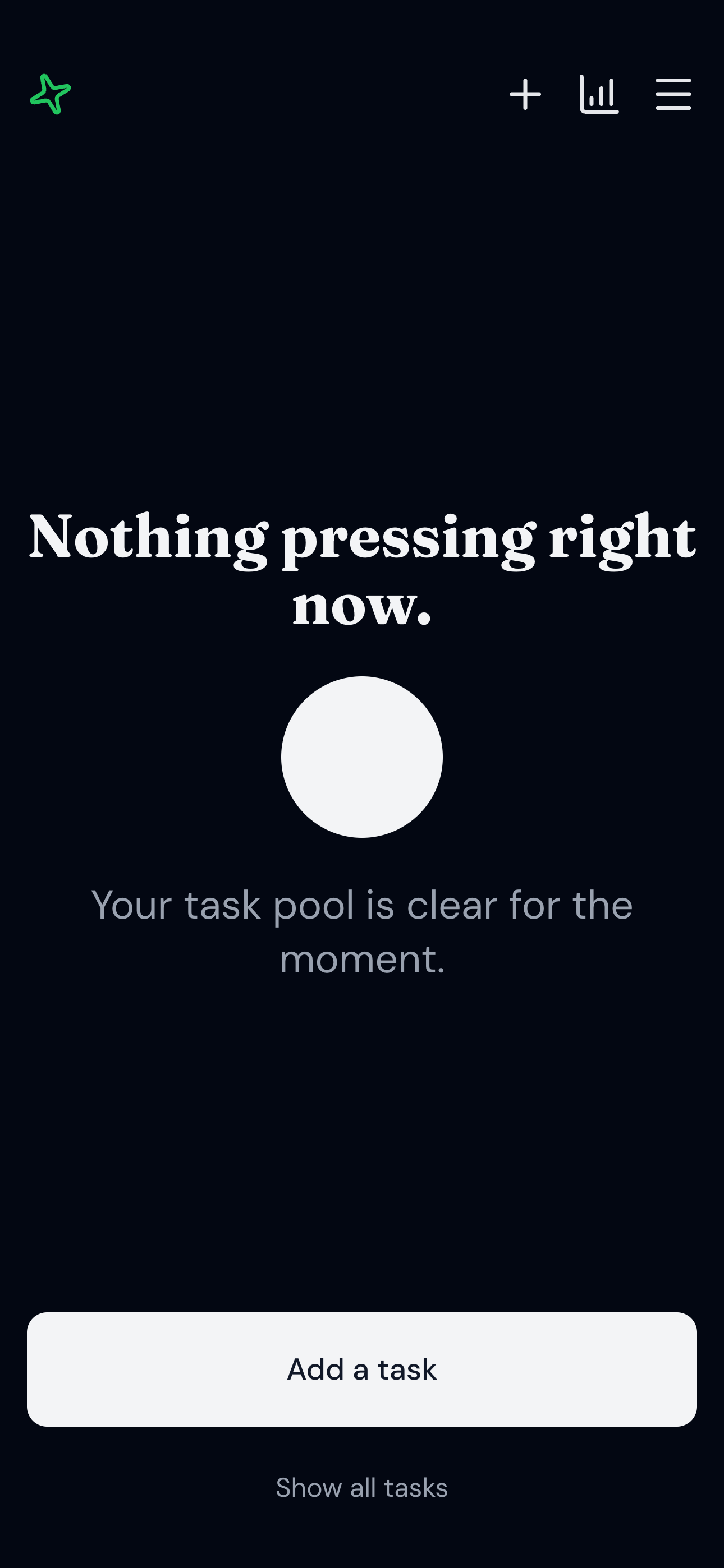 Nothing pressing right now. When the task pool is clear, you're done — until something comes up.